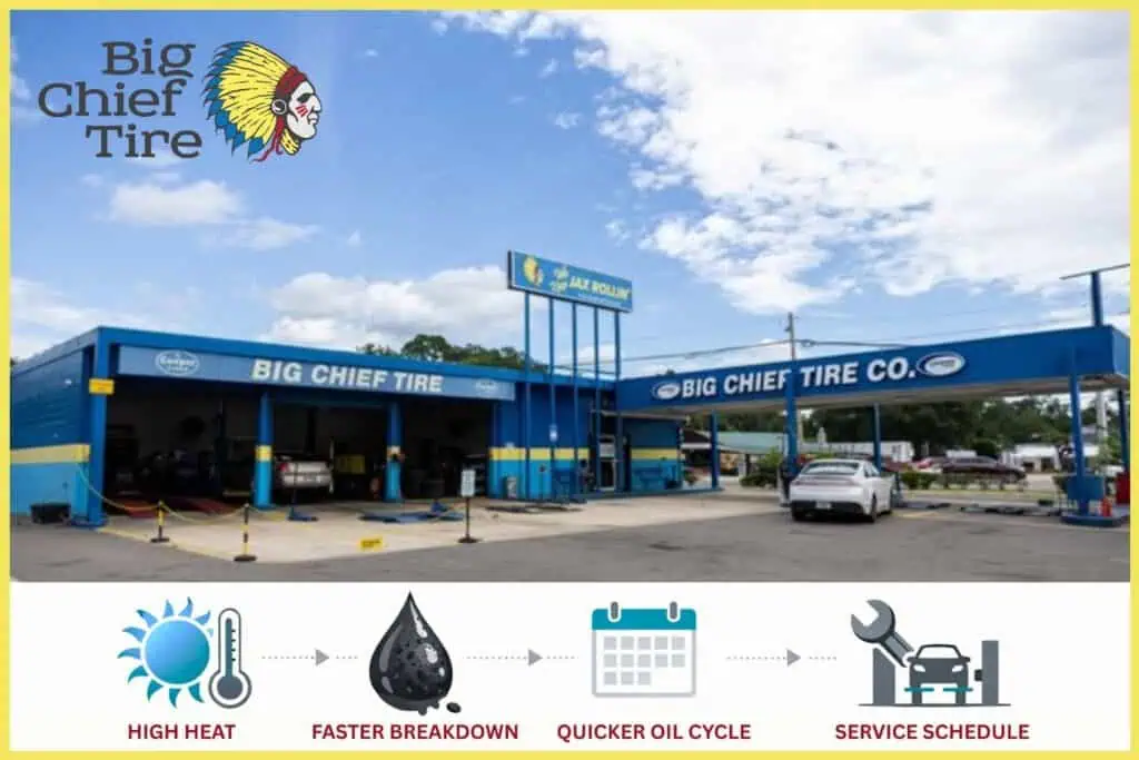 However, Jacksonville’s climate does not match these assumptions. High ambient temperatures, elevated humidity, and the absence of seasonal cooling create conditions where oil degradation never truly slows.